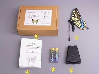빠삐용은 외부 소리과 진동에 반응하여 살아있는 나비처럼 날개 짓을 하는 로봇입니다. 날개와 몸통을 움직이는 것은 BMF100로서, 모터를 사용하지 않아 실제와 같은 움직임과 크기로 날개짓을 합니다. 선물과 각종상품 진열대에 또는 관옆식물의 디스플레이에 적합합니다. 스탠드형 제어장치는 소리와 진동에 반응하는 센서가 내장되어 있습니다.