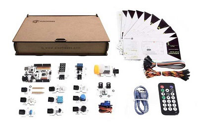 하니테크의 협력사인 ElecFreaks에서 개발한 Arduino 교육용 ( 중급 ) Kit는 단계적으로 편리하게 Arduino 의 기본제어 이론을  배울 수 고안된 뛰어난 Kit입니다. 실험 실습실에서 납땜이 필요없이 선을 바로 꽂아서 1분 이내에 회로를 완성토록 했으며 총 9개의 실습코스, LED, 적외선 센서, 써보, 적외선 원격제어기, 등 총 8만원 이상의 16종 센서모듈을 망라하고,  Freaduino UNO를 포함 단 6만 8천원에 전체 kit를 구성하여 학교나 학원 현장에 바로 투입 할 수 있는 훌륭한 교육용 Kit입니다.